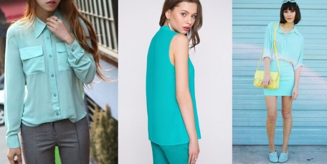 Это лишь самые популярные оттенки бирюзы. На самом деле их огромное количество. Четких правил и канонов нет, подбирайте тот тон, который подходит вам индивидуально. Обращайте внимание на то, чтобы блуза не меняла цвет лица.