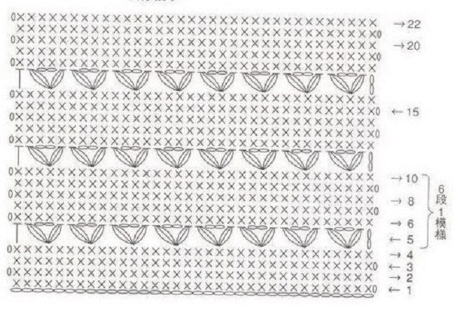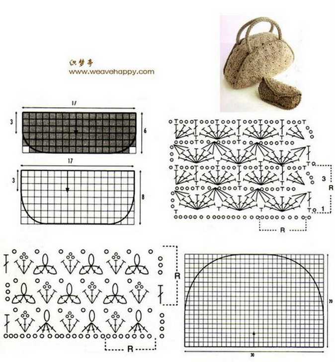 Связать более ажурный вариант поможет рисунок для нижней части сумочки: