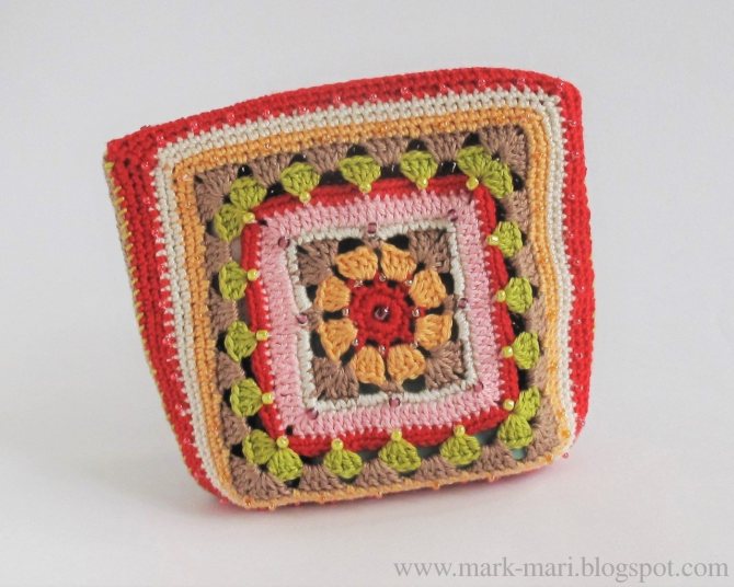 Технология вязания остается прежней, верхняя часть выполнена как в предыдущем описании, но в итоге получите совершенно другую косметичку: