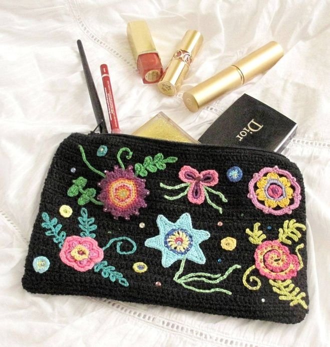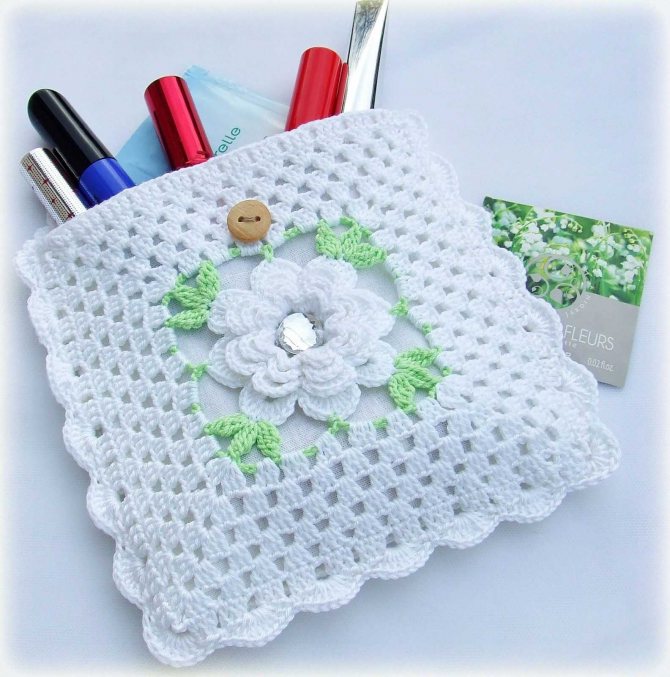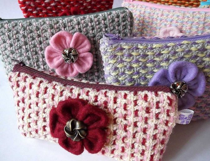 Косметички крючком вяжут простыми вариантами или с применением современных дизайнерских решений: