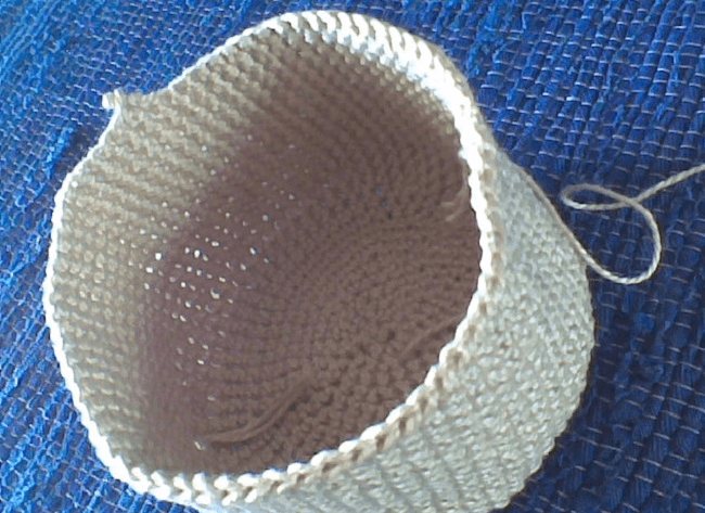 Когда донышко достигнет нужного диаметра, переходите на вязание без прибавлений. Изделие будет напоминать корзинку.
