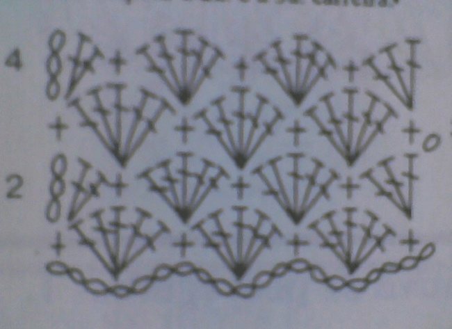 Я вязала по приведенной схеме, слегка усовершенствовав его: если вы делаете узор двуцветным, рекомендую между пышными рядами делать не один, а два ряда столбиков без накида.