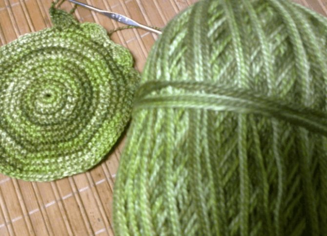 Вокруг получившейся цепочки необходимо провязать еще 13 рядов по кругу. 9 последующих рядов необходимо связать разворотом. Если используются два цвета ниток, то 5 из указанных рядов стоит провязать одним цветом, а остальные 4 – другим.