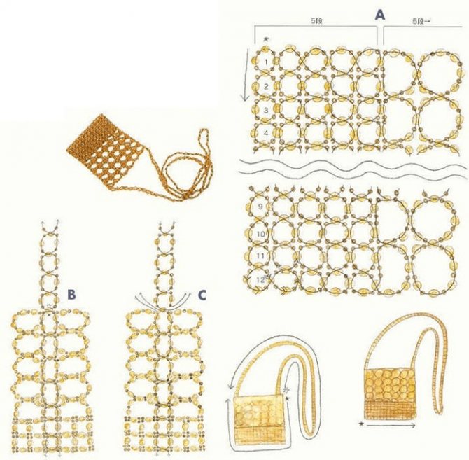 В каком порядке нанизывать бисер подскажет простой рисунок маленькой сумочки: