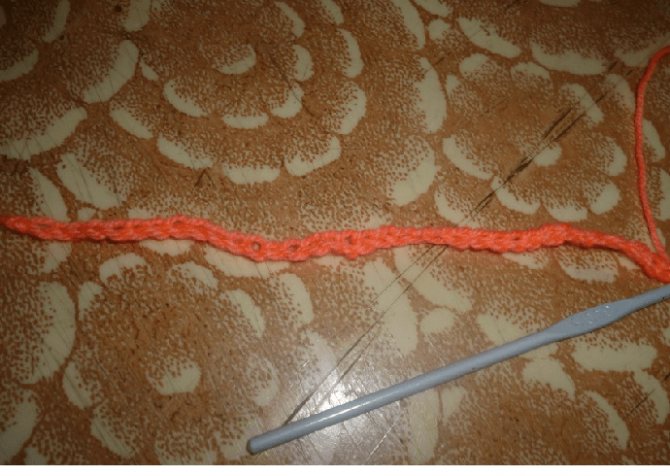Начальный этап – набор цепочки из воздушных петель. Наберите то количество, которое будет равно длине будущего изделия.