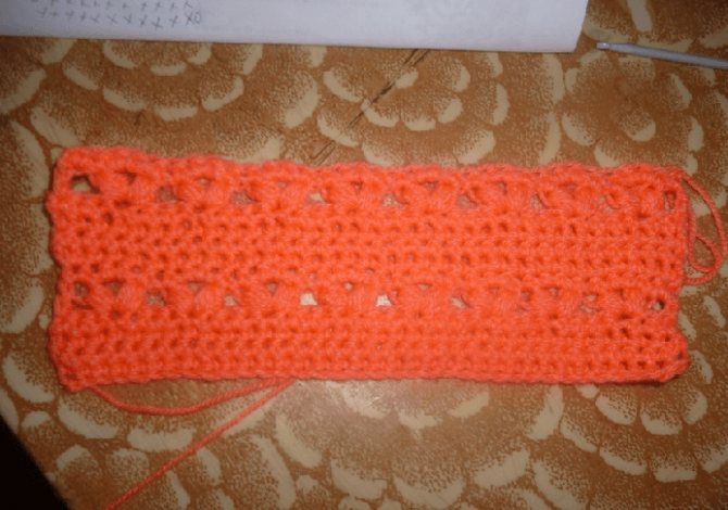 Так как косметичка состоит из двух деталей, необходимо вязать их одинаково столбиками без накидки, а именно набрать 30 воздушных петель и провязать 12 см.