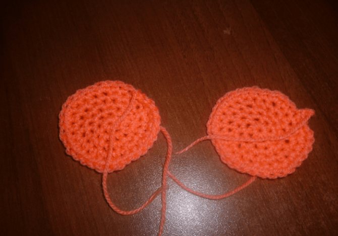 - Обязательно прикладывайте вязание к основному полотну, чтобы правильно рассчитать диаметр боковой части. Свяжите 2 одинаковые детали.