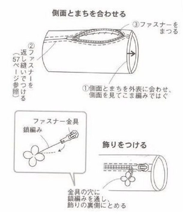После того как оба полотна готовы, отпарьте их утюгом. Донышко должно остаться объёмным! К обеим половинкам косметички пришивается молния, а затем сами половинки сшиваются.