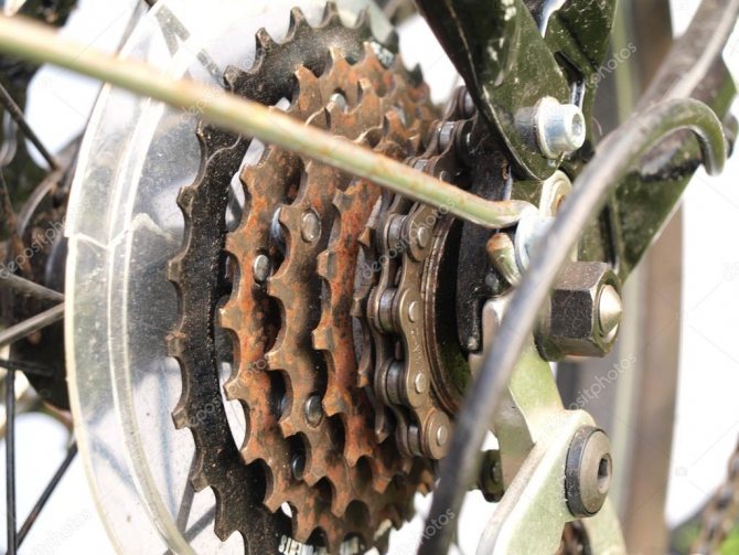 Элементы трансмиссии – звезды, металлические остовы педалей, цепь – все это чистится отдельно от велосипеда. В любом случае эти детали придется снимать.
