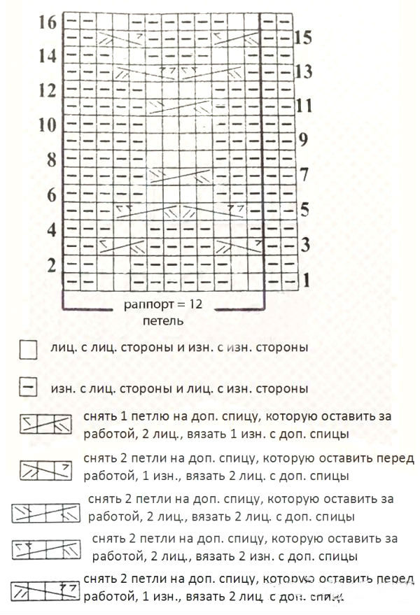 Вяжем на 26 п. согласно схемы до 16-го р., далее повторяем 1-12 рр. по схеме.