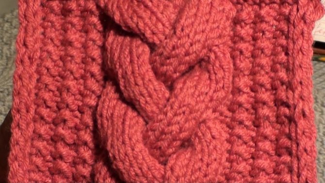 Капюшон вяжется с отворотом. Поэтому по краям полотна с двух сторон должен быть отступ, равный 10 см от узора. Отступ вяжется резинкой 2х2.