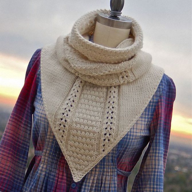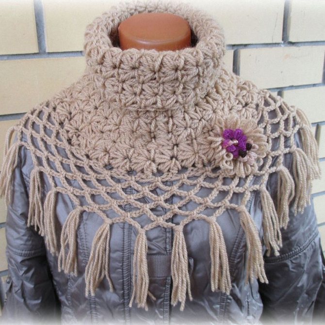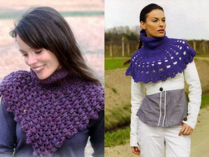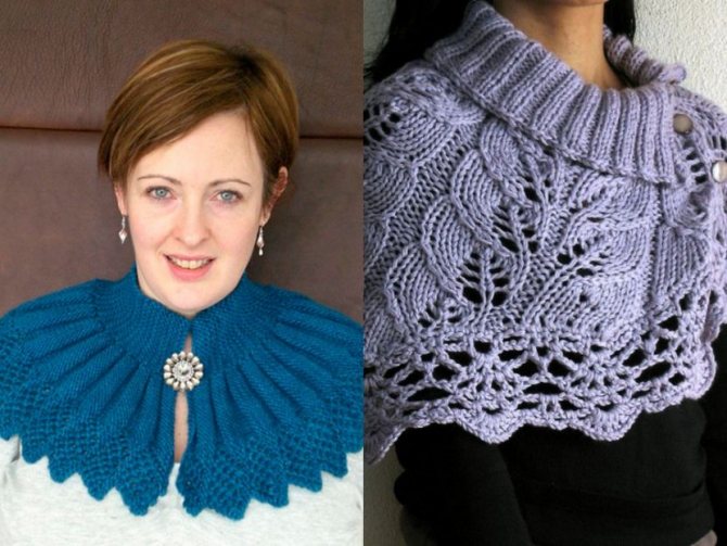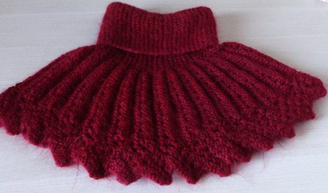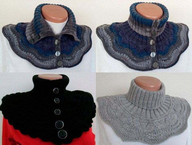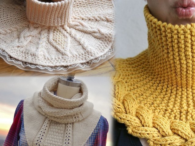 Еще одна разновидность небольшого, но полезного изделия, которое можно создать своими руками — манишка. Горловина связанная спицами и закрывающая зону декольте и сегодня достаточно популярная вещь, ведь зачастую ее часто используют в повседневной жизни в холодный период года. Это изделие из теплой пряжи прекрасно защищает горло от снега, ветра и мороза, и спасает от болезней множество людей.