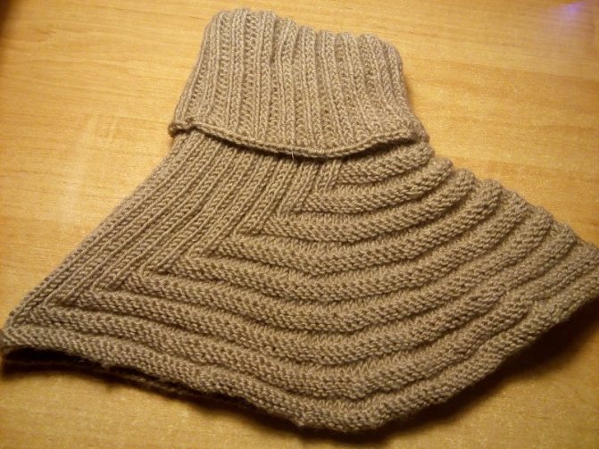 Верхняя часть вяжется резинкой 2 х 2. Набирается 80 петель и на чулочных спицах вяжется 20 сантиметров резинки. Далее на каждой дорожке добавляется по лицевой петле, так что получается чередование двух изнаночных петель и трех лицевых. Следующие ряды вяжутся в соответствии с расчетом.