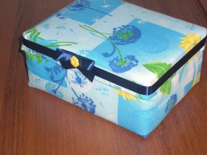 Для канцелярии. Две коробки склеивают друг с другом и украшают тканью либо обоями.