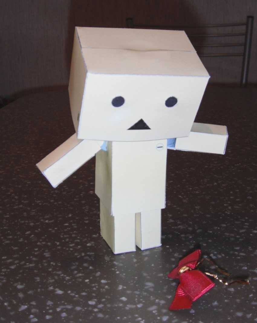 Конечно, такая поделка не предназначена для взрослых деток, зато крохи от года безусловно оценят забавную игрушку. А когда она надоест, листы картона складываются до лучших времен.