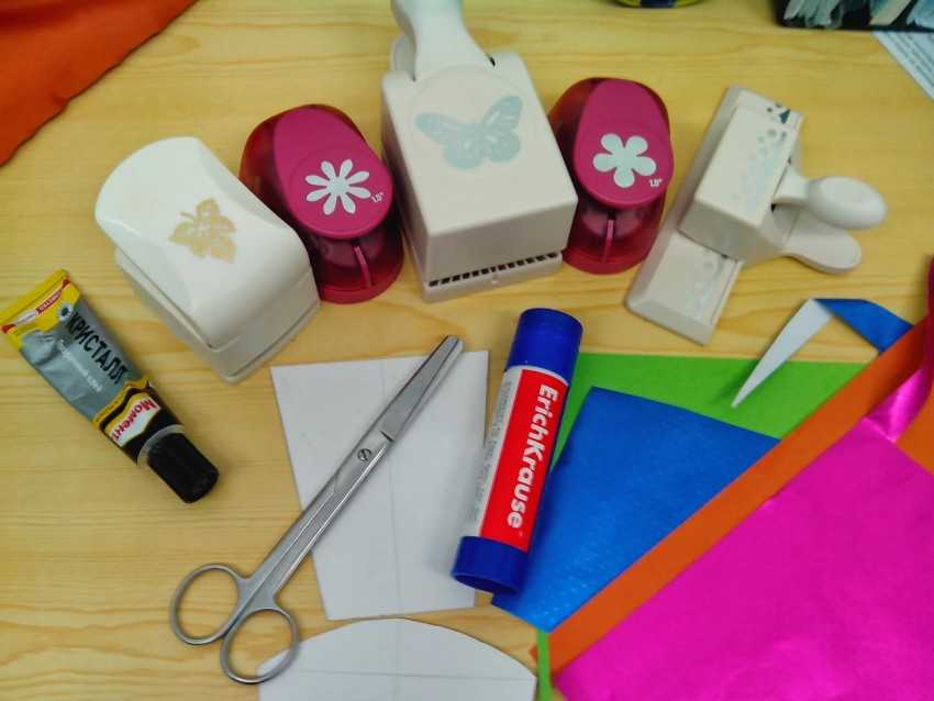 Цветная бумага или фетр. Все зависит от того, какую именно поделку нужно собрать. Ими можно выполнить отделку.