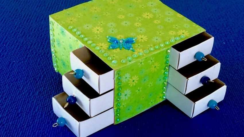 В качестве поделок из спичечных коробков создают различные выдвижные шкафчики, коробочки с «сюрпризом» и прочее.