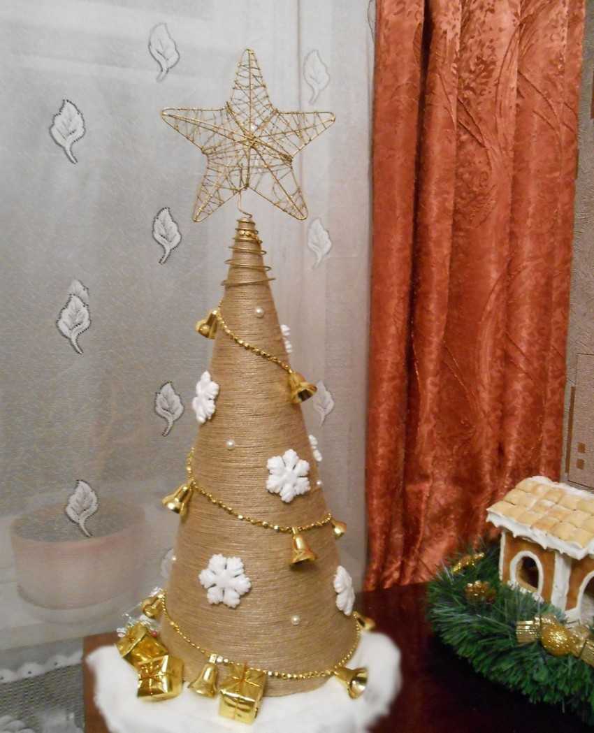 Обычные поделки из картонной коробки красят, обвязывают лентой и ставят друг на друга. Такие невысокие пирамидки пристраивают по углам комнат и обвешивают гирляндой.