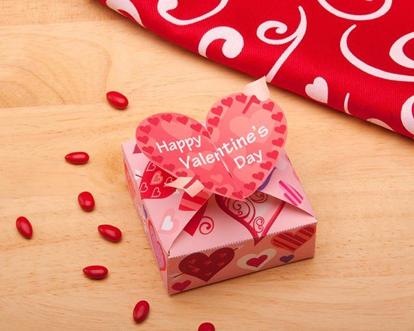 Он приклеивается на крышку коробки, вся конструкция раскрашивается в один цвет. Симпатичная конфетка готова, осталось только положить внутрь подарок и вручить получателю.