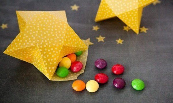 А можно сделать необычную конфету. Для этого из куска картона вырезается шестиугольник, напоминающий верхнюю часть шоколадной конфеты.