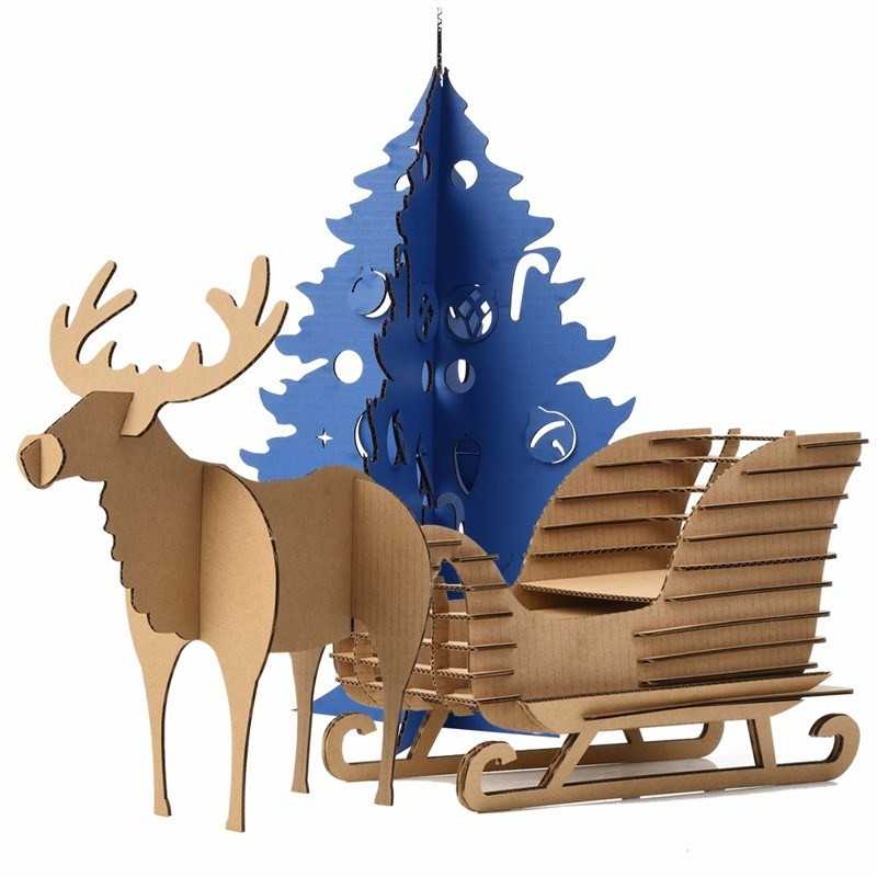 На просторах интернета можно найти сотни схем фигурок — оленей, Дедов Морозов и Снегурочек. Их можно перенести на картонные коробки и вырезать по нужным линиям.