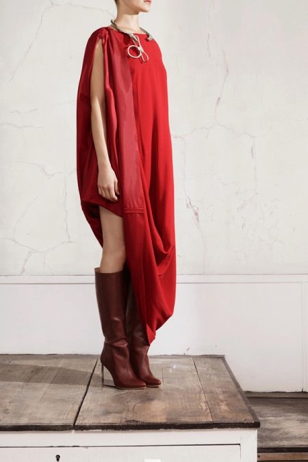 Потрясающие комплекты представляют из себя сапоги вместе с платьями коричневых или красных оттенков, выполненных в черную или коричневую клетку, с пальто или полупальто цвета хаки, горчичными брюками или легкими шелковыми платьями.