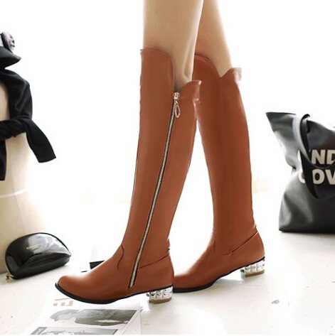 Сегодня очень популярны длинные сапоги без каблука. Это могут быть классические ботфорты или сапоги-чулки. Ботфорты имеют длину немногим выше колена, а сапоги-чулки могут иметь еще боле длинное голенище, достигающее середины бедра.