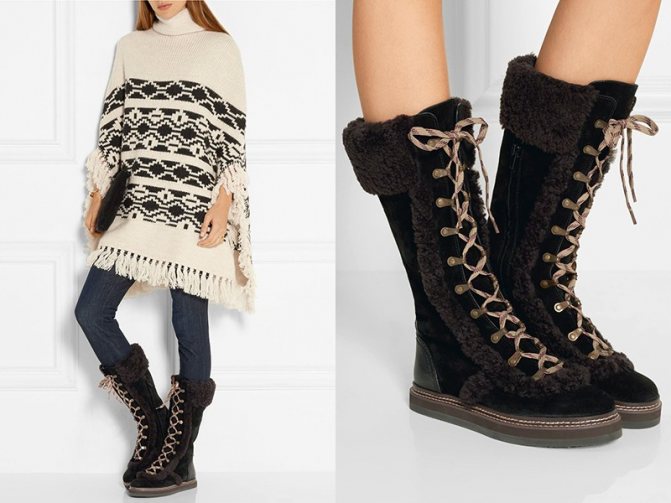 Такие сапожки превосходно подчеркнут всю изящность и сложность образа, если вы наденете их с короткой юбочкой или леггинсами, зауженными джинсами, а закончить образ можно лёгким коротеньким пальто или из натуральной шерсти, коротенькой шубкой.