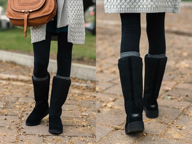 Угги, как и классические сапоги, могут иметь разную высоту голенища. А также разнообразное оформление. Существуют даже вечерние модели таких сапожек, расшитые паетками и украшенные стразами.