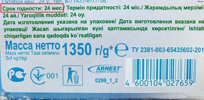 - продолжительность годности, дата изготовления, окончание срока применения;