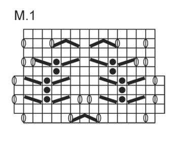 Ажурный узор вяжите по схеме. На схеме приведены лицевые ряды, изнаночные ряды — вяжите изнаночными петлями.