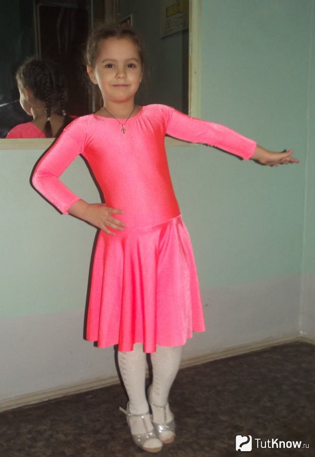 Для занятий девочки по бальным танцам хочется сделать красивую модель платья. Но не следует усердствовать с пышными юбками. На занятии в таком изделии будет не так удобно и поэтому для таких случаев мастера чаще используют модели с юбками полусолнцами. Длина чаще используется не до пола, так как девочка легко будет в ней путаться. Чаще берут модели с юбками по колено и чуть выше колена, чтобы ничто не мешало в танце, а учитель мог видеть ноги и то, как девочка выполняет движения танца.