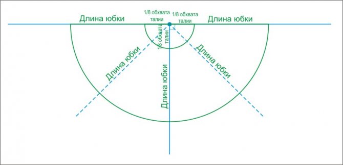 Если же вы хотите построить выкройку сами, тогда посмотрите, как вы создадите эту нижнюю часть наряда. Юбку тоже несложно выкроить. Нужно будет нарисовать четвертую часть, используя для радиуса представленную форму. На этой выкройке показано и как создать чертёж для рукава.