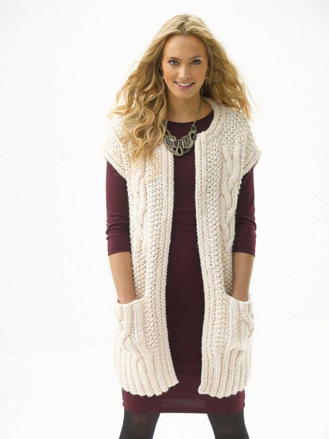 Вязаный спицами жилет является неотъемлемой частью гардероба каждой девушки или женщины. Некоторые модницы имеют в своих коллекция много безрукавок, что позволяет составлять великолепные комбинации одежды, соединяя их с разными блузками, юбками и брюками. Безрукавки можно носить не только зимой и осенью.