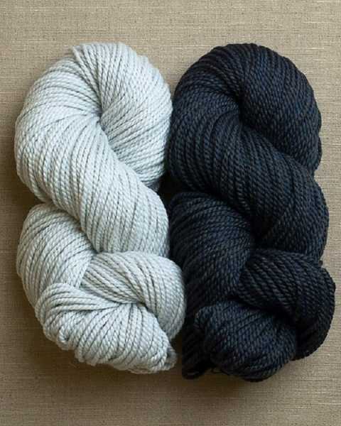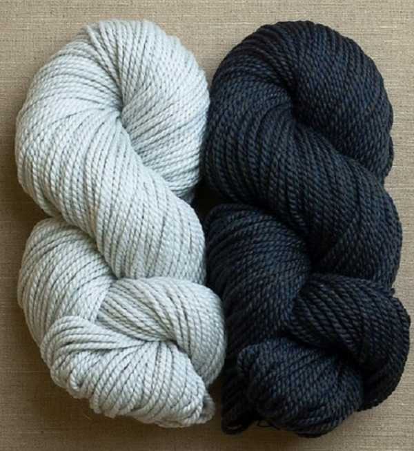 Такая функциональная вещь удачно дополнит любой образ в классическом или повседневном стиле. Вязание выполняют из пряжи двух контрастных цветов, в нашем случае – темно-синего и бледно-голубого оттенков.